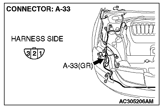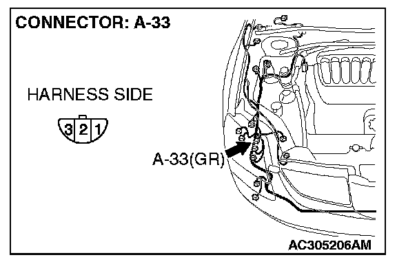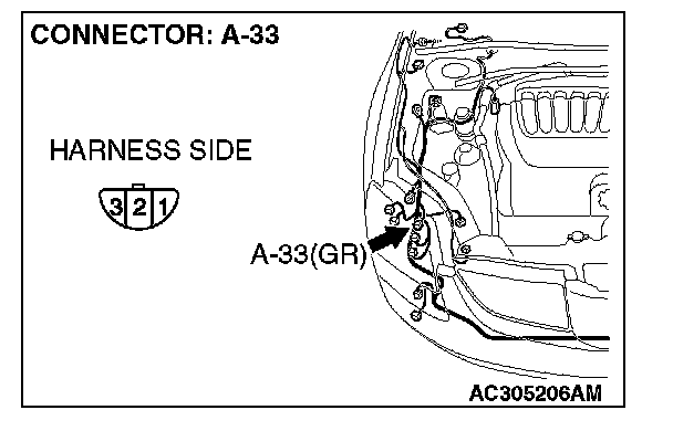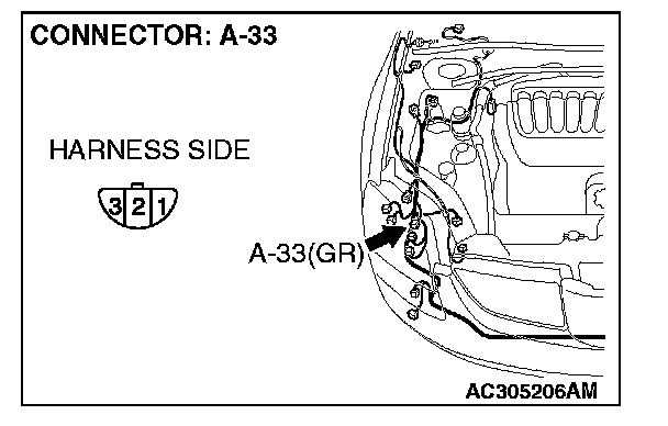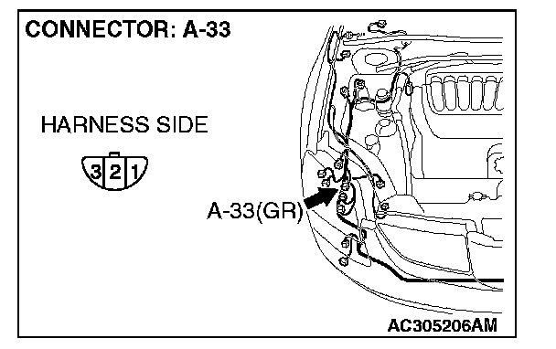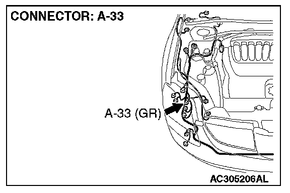 STEP 5. Check headlight (RH) connector A-33 for loose, corroded or damaged terminals, or terminals pushed back in the connector.