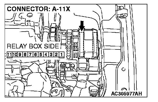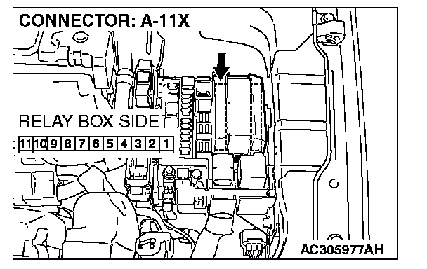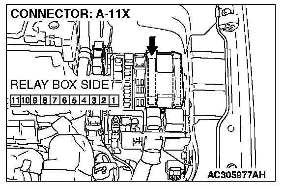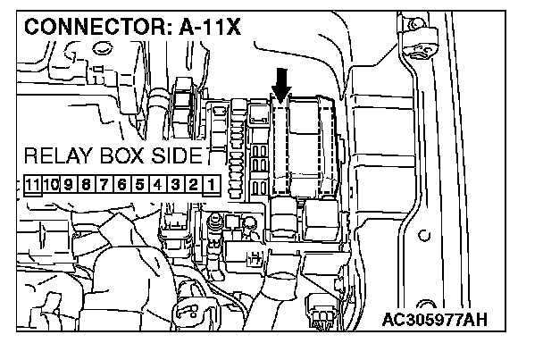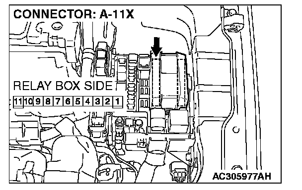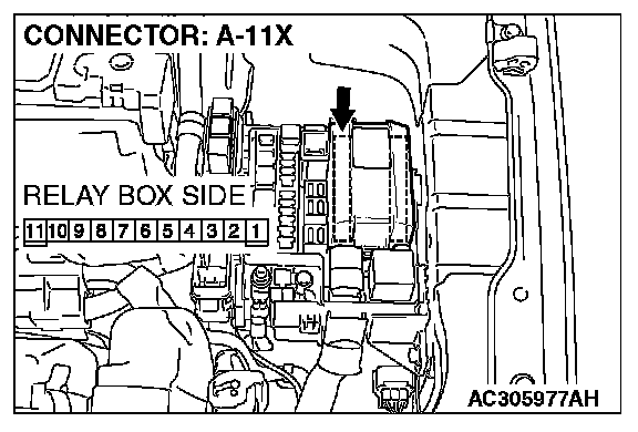 STEP 11. Check headlight (RH) connector A-33 and front-ECU connector A-11X for loose, corroded or damaged terminals, or terminals pushed back in the connector.
