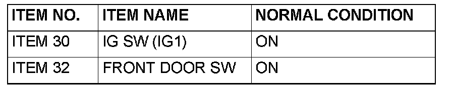 Normal condition is not displayed for "FRONT DOOR SW" : Refer to Inspection Procedure M-4 "ETACS-ECU does not receive any signal from the front door switches." Inspection Procedure M-4