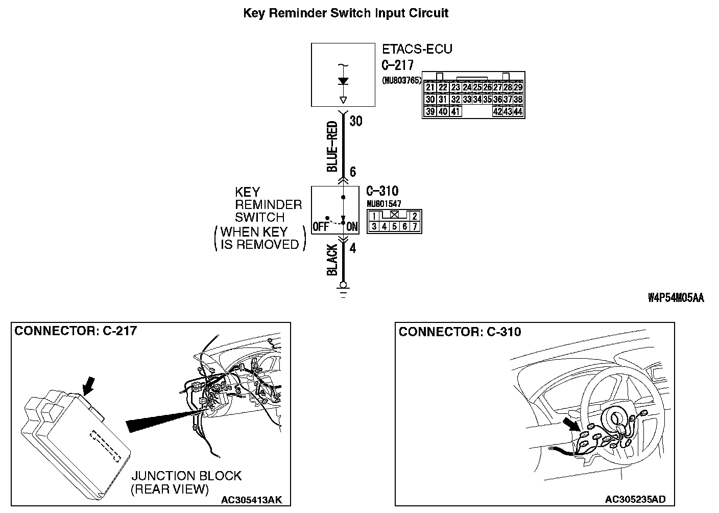 STEP 6. Check the wiring harness between key reminder switch connector C-310 (terminal 6) and ETACS-ECU connector C-217 (terminal 30).