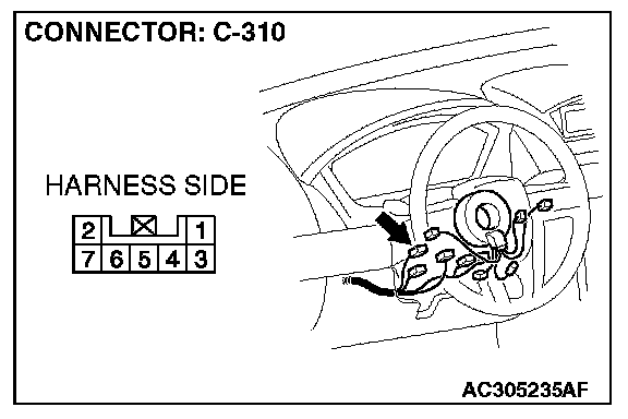 STEP 1. Check key reminder switch connector C-310 for loose, corroded or damaged terminals, or terminals pushed back in the connector.