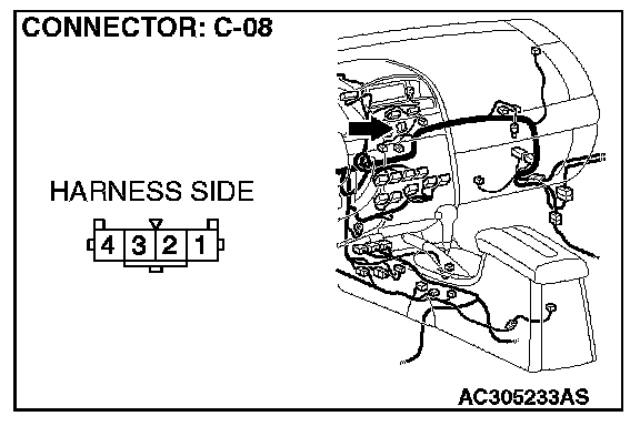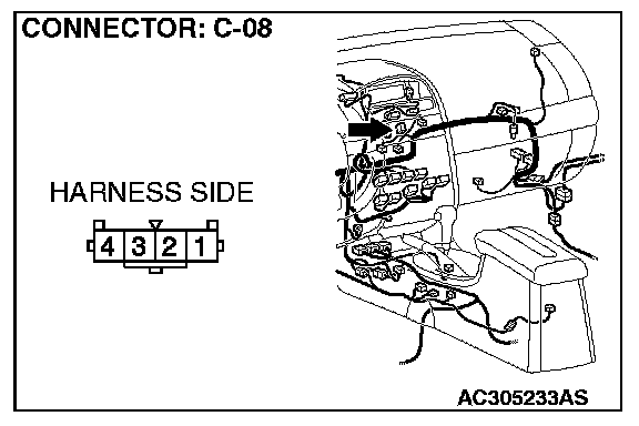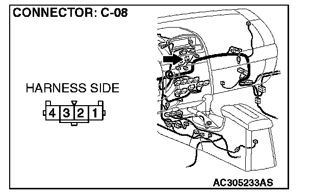 STEP 4. Check the wiring harness between hazard warning light switch connector C-08 (terminal 2) and ground.