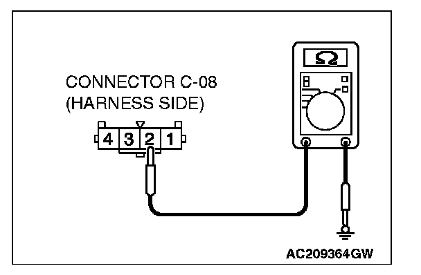 STEP 3. Check the ground circuit to the hazard warning light switch. Measure the resistance at hazard warning light switch connector C-08.