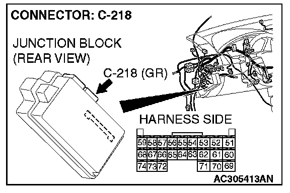 STEP 5. Check ETACS-ECU connector C-218 for loose, corroded or damaged terminals, or terminals pushed back in the connector.