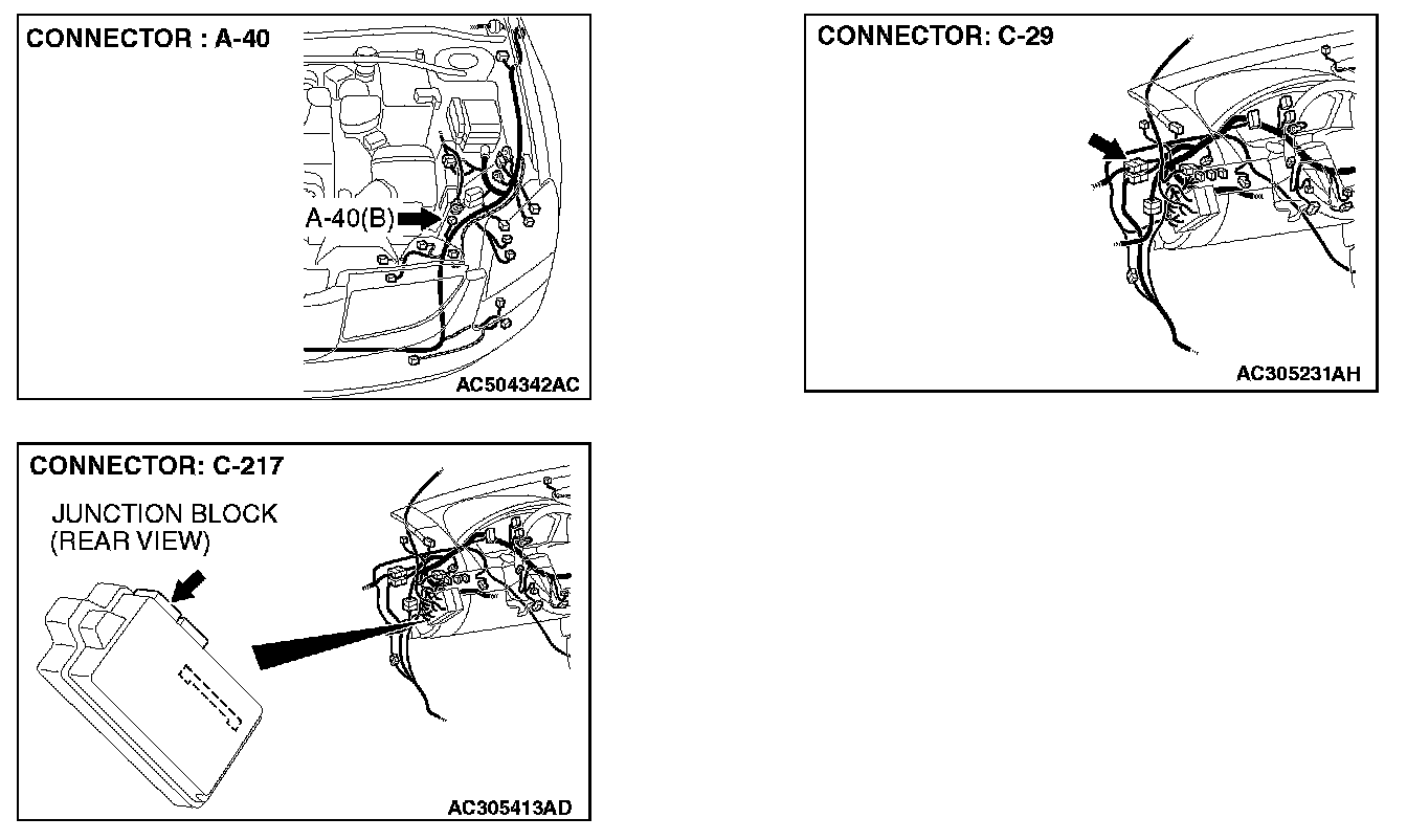 STEP 5. Check hood switch connector A-40 and ETACS-ECU connector C-217 for loose, corroded or damaged terminals, or terminals pushed back in the connector.