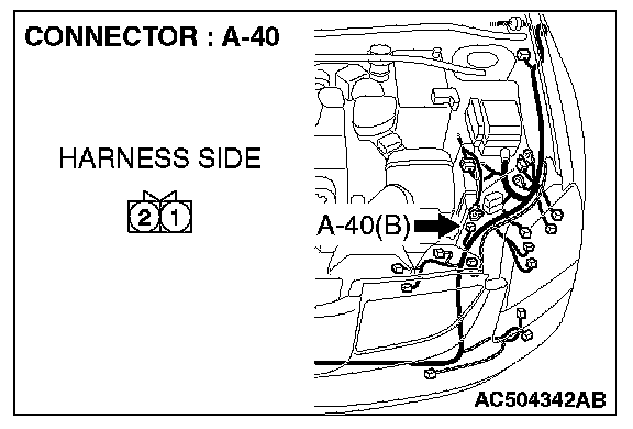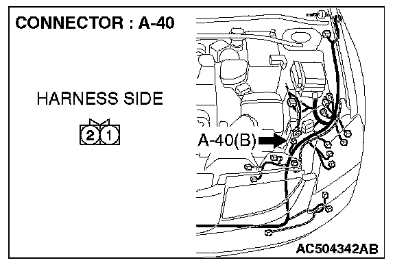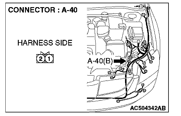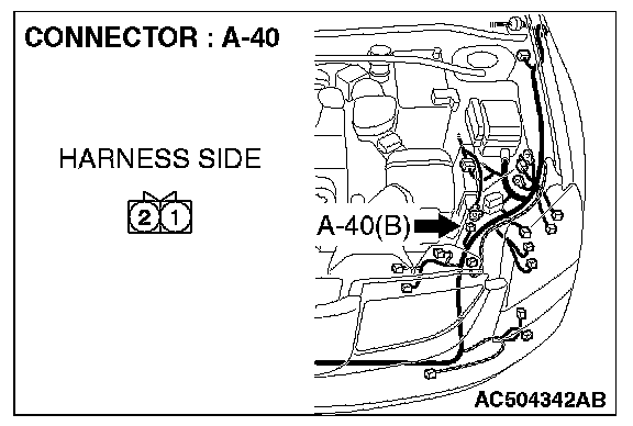 STEP 1. Check hood switch connector A-40 for loose, corroded or damaged terminals, or terminals pushed back in the connector.