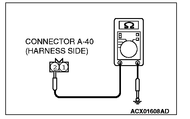 STEP 4. Check the wiring harness between hood switch connector A-40 (terminal 2) and ground.