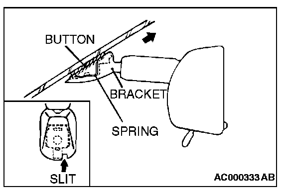 NOTE: While the spring is pushed in, the connection between the spring and the pawl of the button is released.