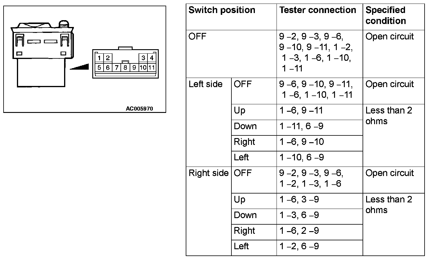DOOR MIRROR CONTROL SWITCH CONTINUITY CHECK