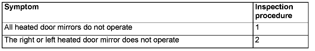 INSPECTION PROCEDURE 2: The Right or Left Heated Door Mirror does not Operate