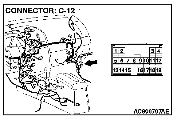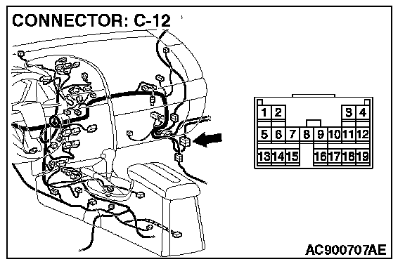 NOTE: Also check intermediate connector C-12 for loose, corroded or damaged terminals, or terminals pushed back in the connector. If intermediate connector C-12 is damaged, repair or replace the damaged component(s) as described in General (Electrical), Harness Connector Inspection.