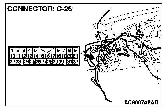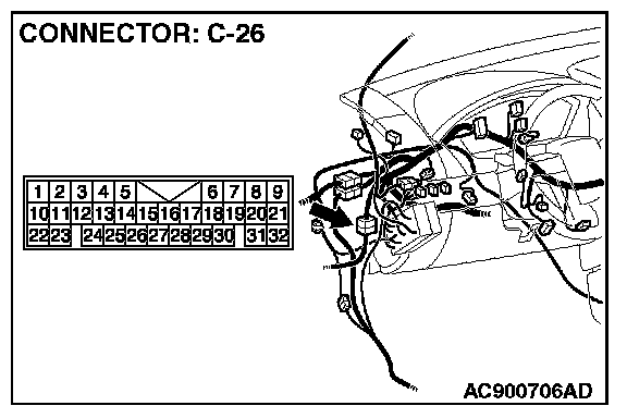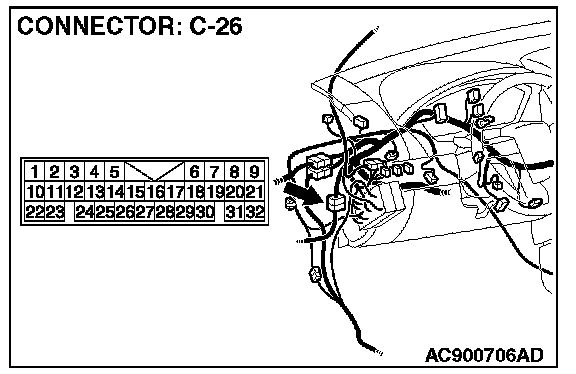 NOTE: Also check intermediate connector C-26 for loose, corroded or damaged terminals, or terminals pushed back in the connector. If intermediate connector C-26 is damaged, repair or replace the damaged component(s) as described in General (Electrical), Harness Connector Inspection.
