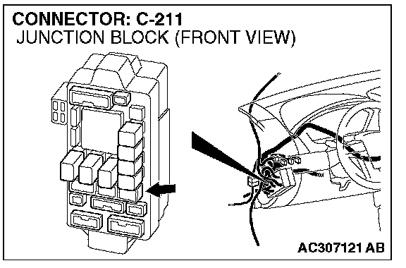 STEP 6. Check junction block C-211 for loose, corroded damaged terminal, or terminals pushed back in the connector.