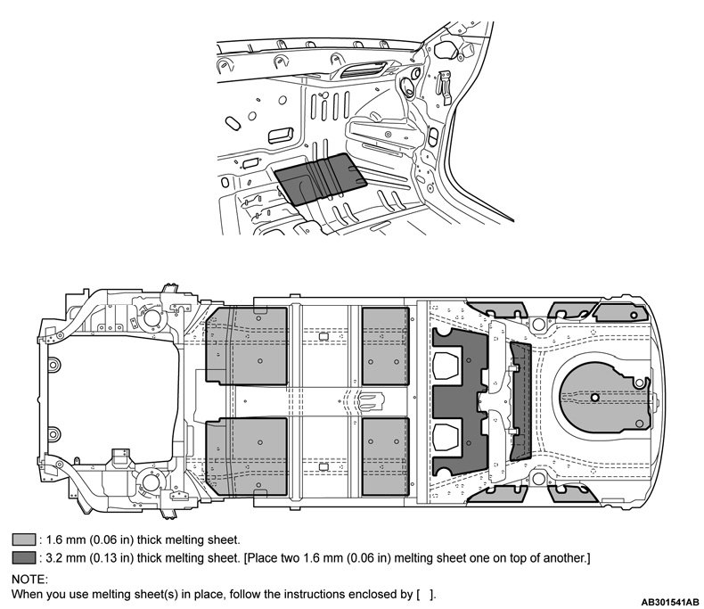 A silencer (melting sheet) has been adhered on the dash panel and the top part of the floor to improve anti-vibration performance and to shut-out exhaust gas heat.