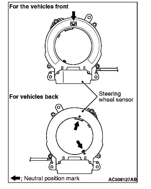 Be sure to align the three neutral point marks of the steering wheel sensor at the same time as shown in the figure. If these mating marks are not aligned correctly, the steering wheel sensor may be damaged.