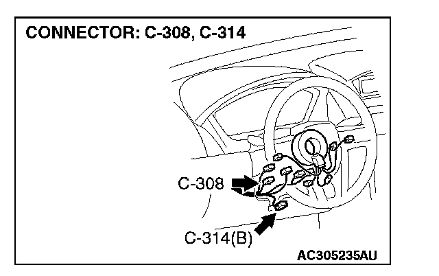 STEP 4. Check steering wheel sensor connector C-314 for loose, corroded or damaged terminals, or terminals pushed back in the connector.
