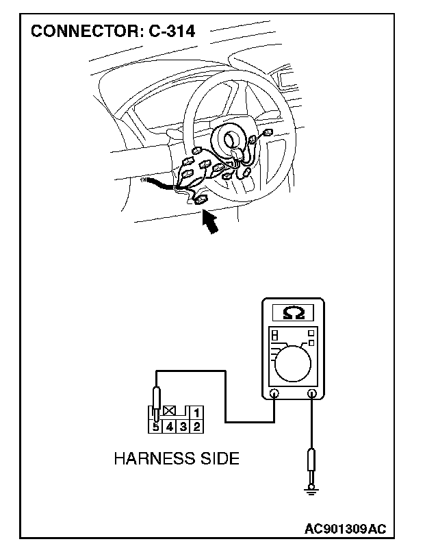 STEP 3. Measure the resistance at steering wheel sensor connector C-314.