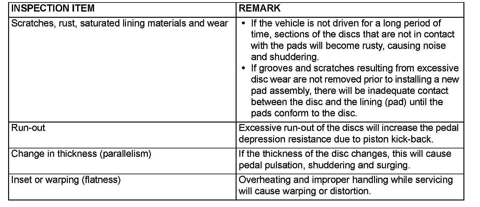 Disc brakes must be kept within the allowable service values in order to maintain normal brake operation.