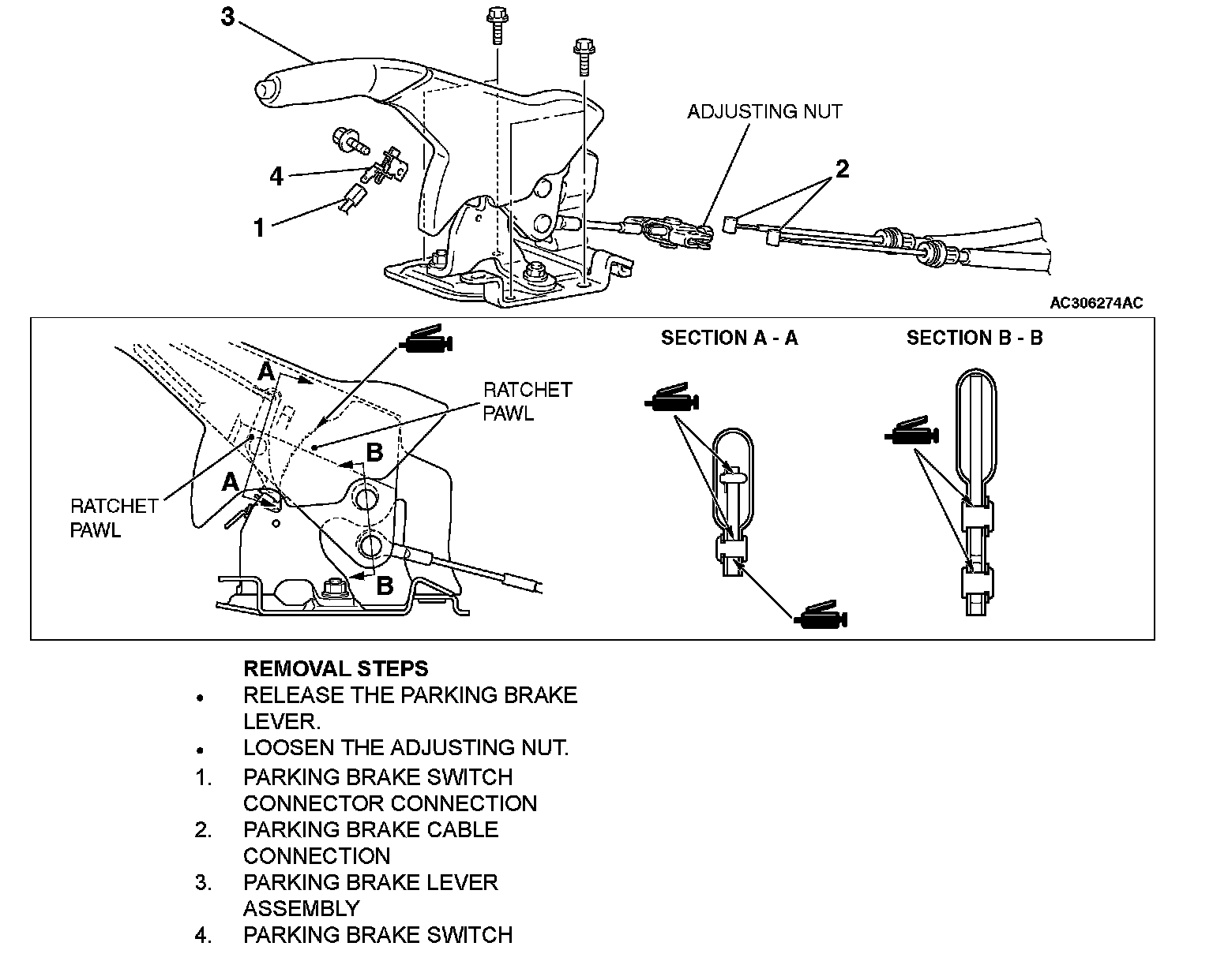 PARKING BRAKE LEVERREMOVAL AND INSTALLATION