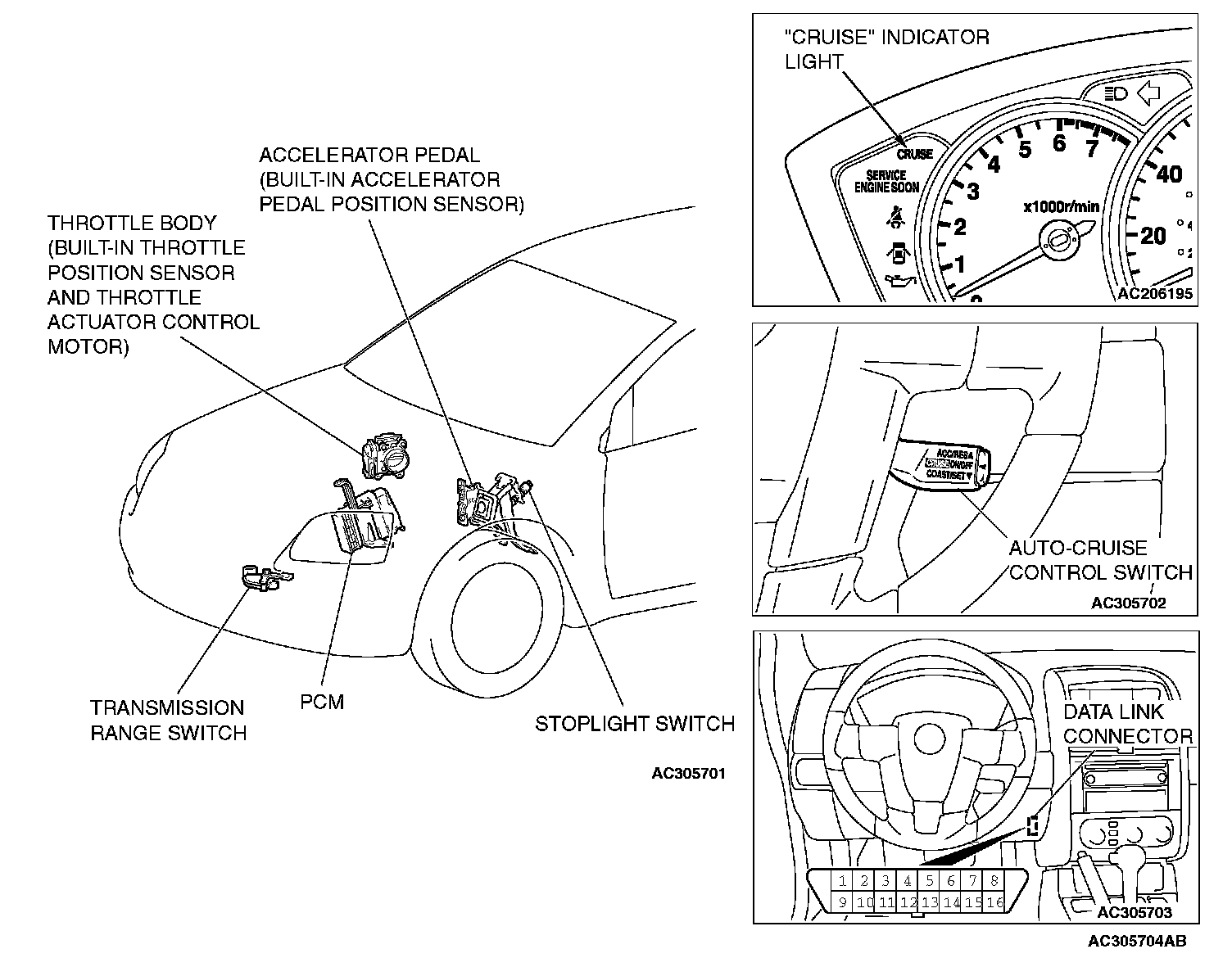 By using the auto-cruise control system, the driver can select and maintain a desired cruising speed* without depressing the accelerator pedal.