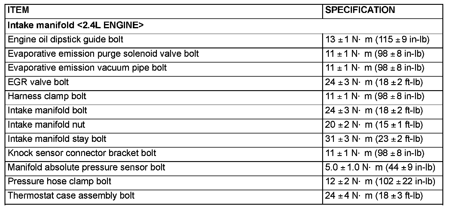 Fastener Tightening Specifications - Intake Manifold: