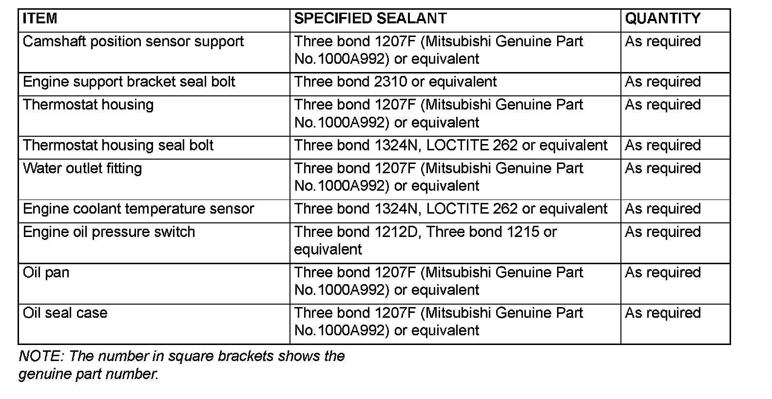 This engine has several areas where the form-in-place gasket (FIPG) is used for sealing. To ensure that the FIPG fully serves its purpose, it is necessary to observe some precautions when applying it.