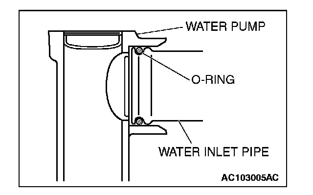 Fit an O-ring into the O-ring groove located at the end of the water inlet pipe and apply water or coolant to the O-ring or the inside of the mounting surface of the water pump for insertion.