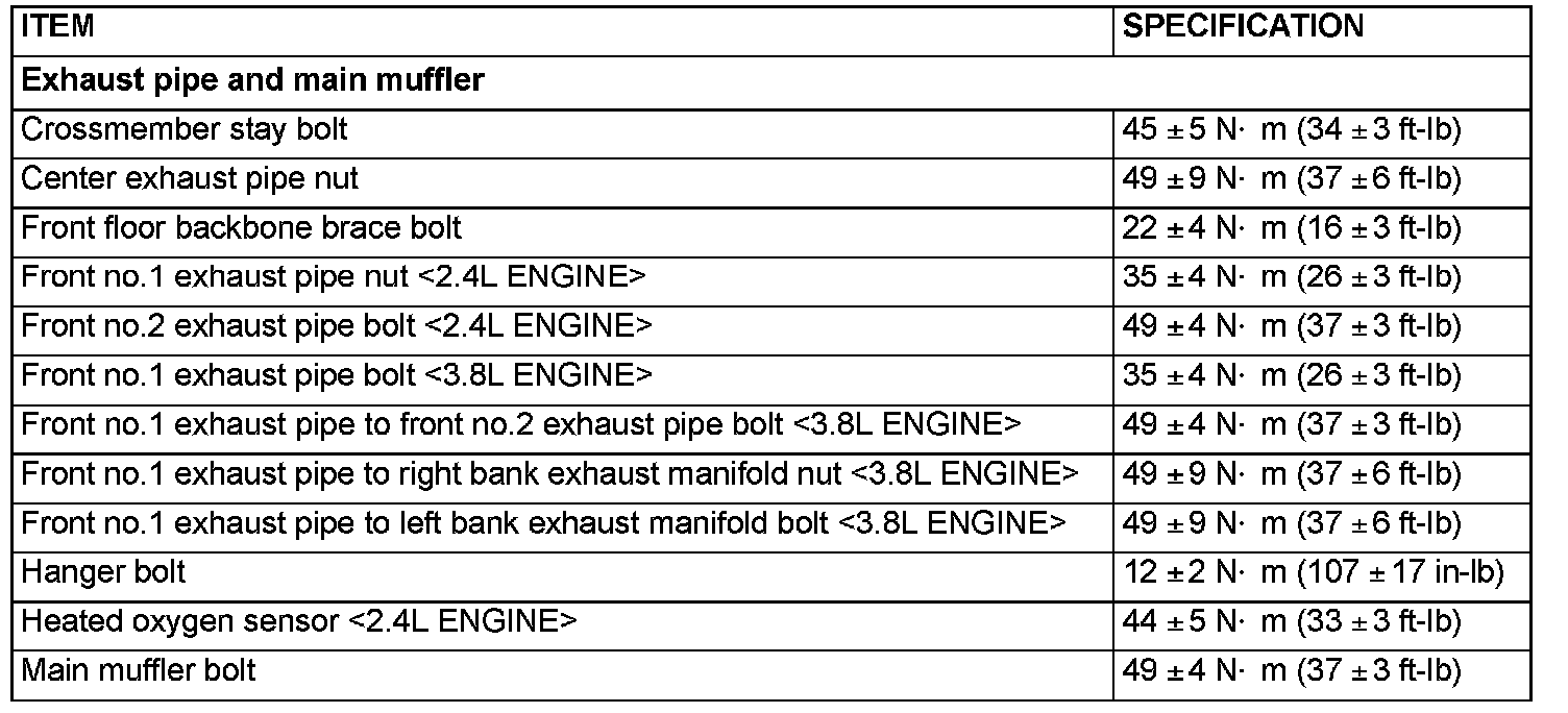 Fastener Tightening Specifications - Exhaust Pipe And Main Muffler:
