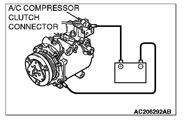 2. Connect positive battery voltage directly to the connector for the A/C compressor clutch.