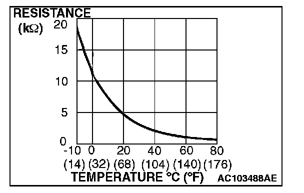 When the resistance between the sensor terminals is measured under two or more temperature conditions, the resistance should approximately satisfy the illustrated values.