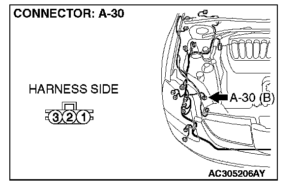 STEP 3. Check A/C pressure sensor connector A-30 for loose, corroded or damaged terminals, or terminals pushed back in the connector.