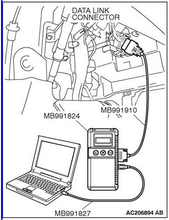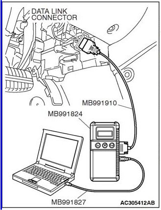 (1) Connect scan tool MB991958 to the data link connector.