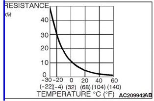 (2) Measure the resistance between the sensor terminals under at least two temperatures. The resistance values should meet the values shown.