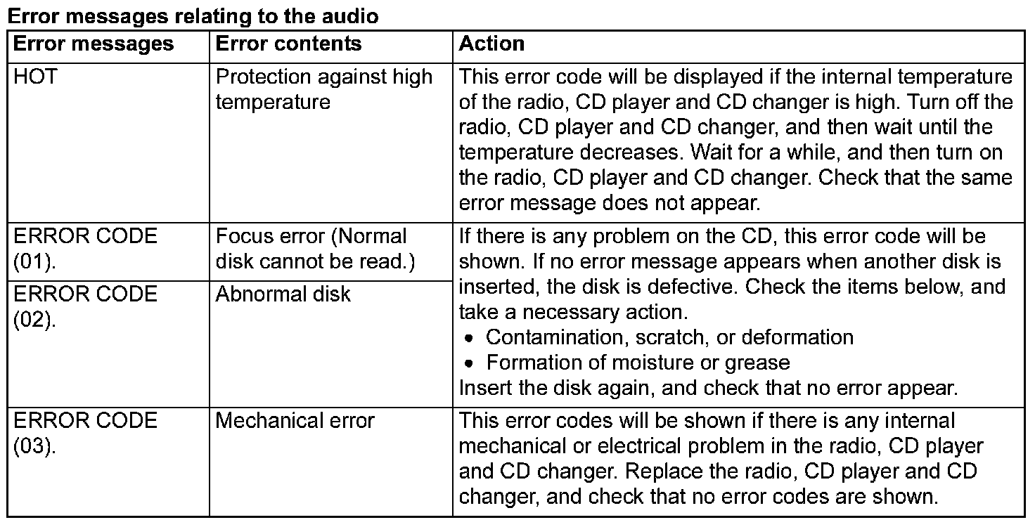 Error messages relating to the audio