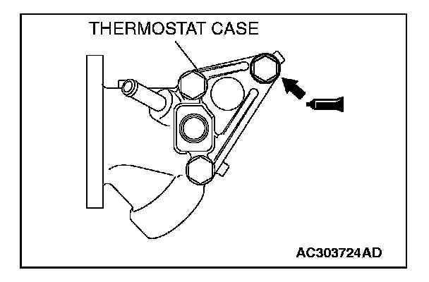 NOTE: Install the thermostat case mounting bolt immediately after applying sealant.