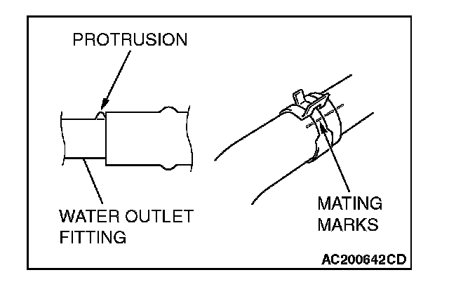 1. Insert radiator upper hose as far as the protrusion of the water outlet fitting.