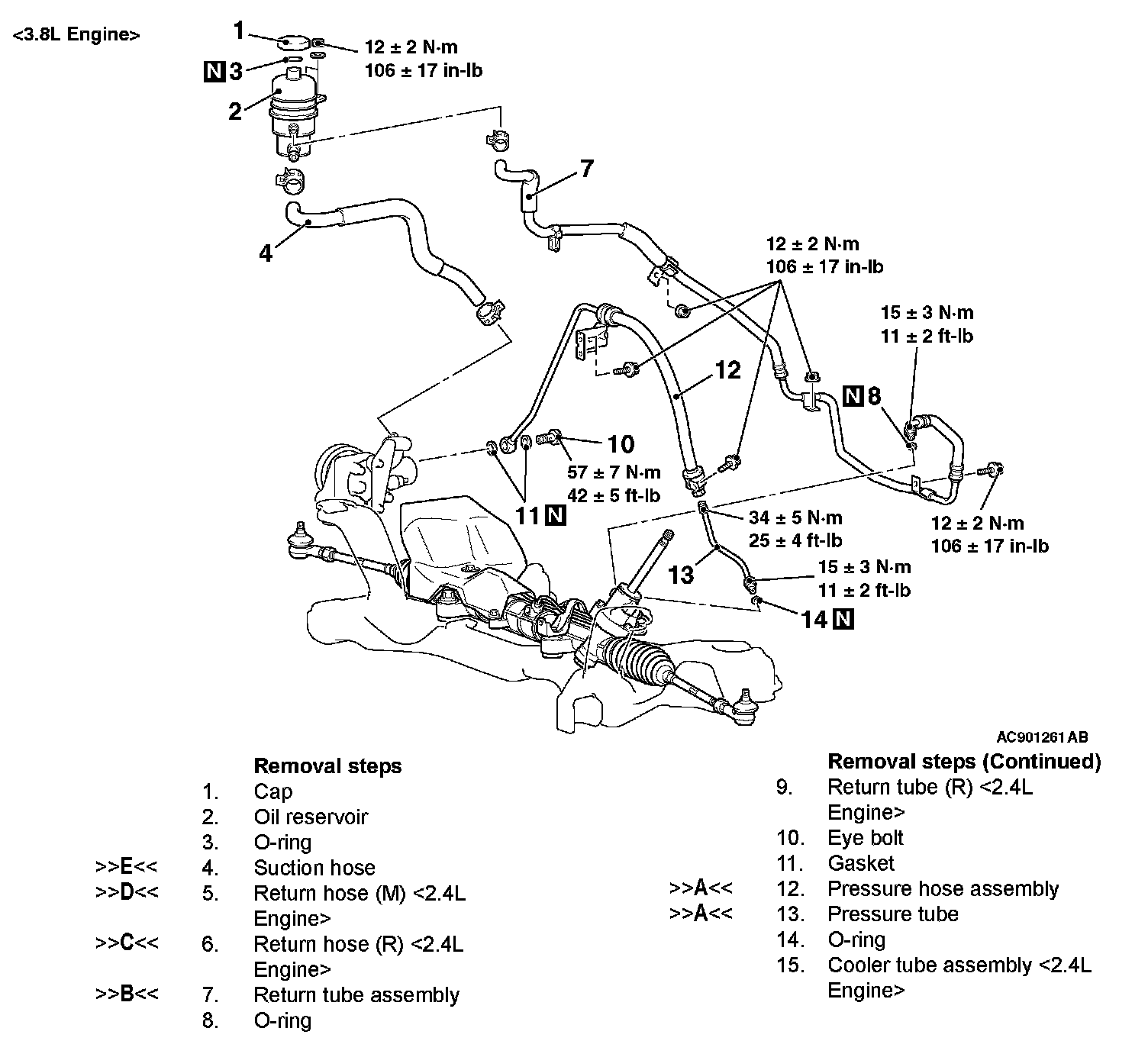 POWER STEERING HOSESREMOVAL AND INSTALLATION