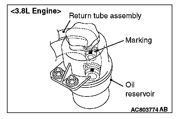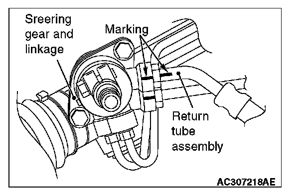 1. Install the return tube assembly so that the marking is positioned as shown in the illustration.