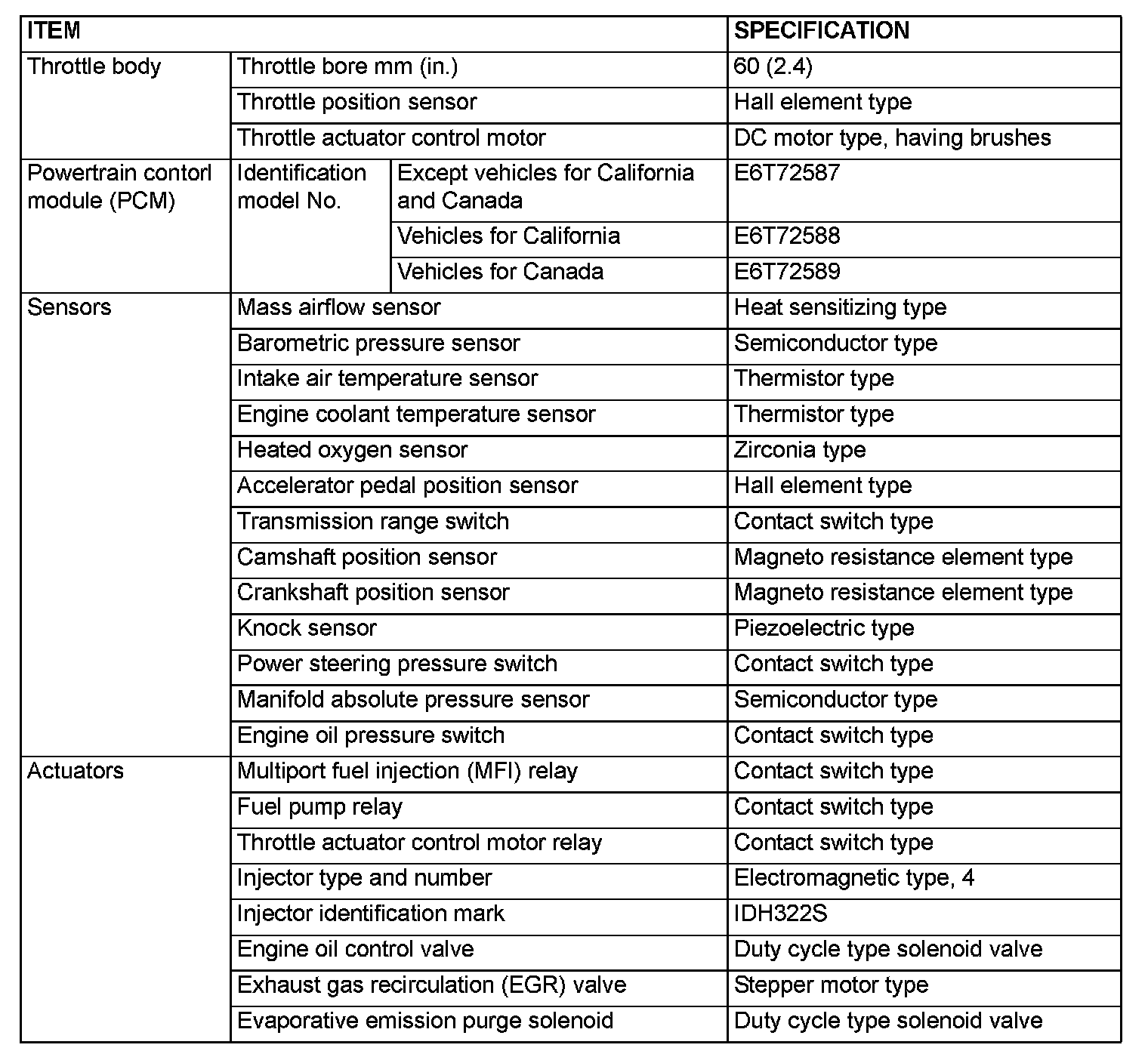 GENERAL SPECIFICATIONS