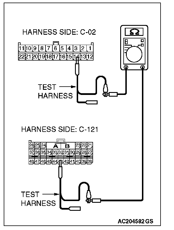 - The test wiring harness should be used.