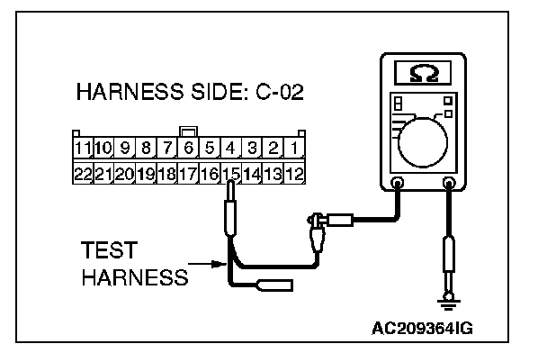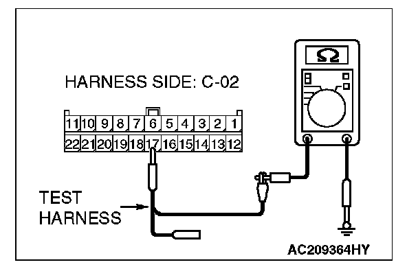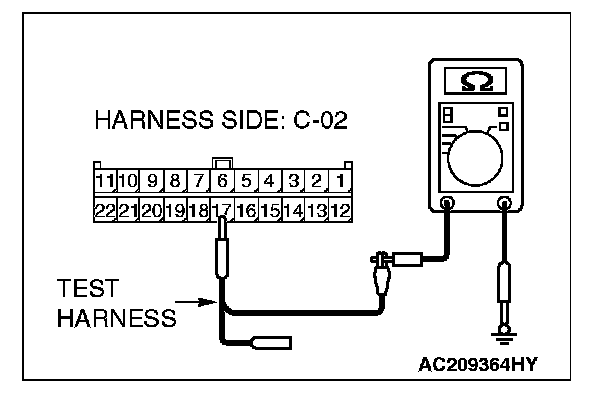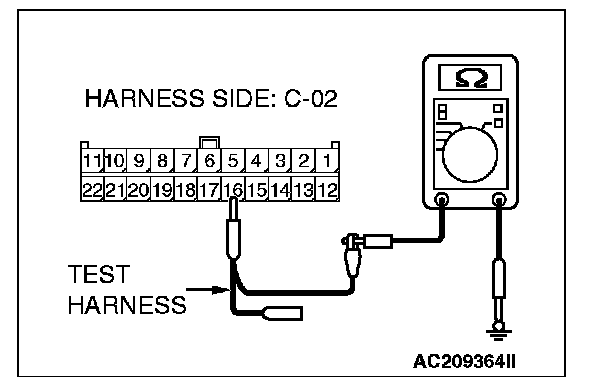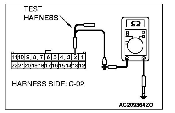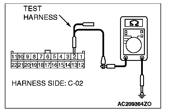 1. Disconnect joint connector (3) C-02, and measure the resistance at the wiring harness side of joint connector (3) C-02.
