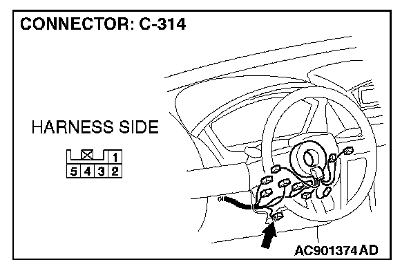 STEP 22. Check steering wheel sensor connector C-314 for loose, corroded or damaged terminals, or terminals pushed back in the connector.