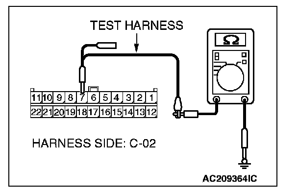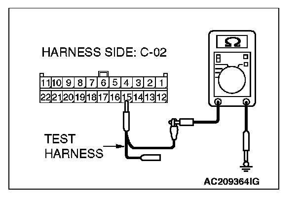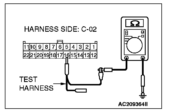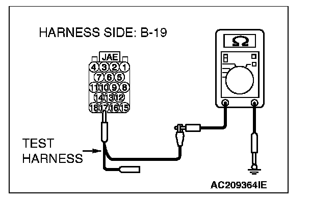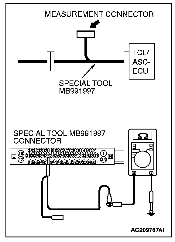 2. Connect special tool MB991970 (ABS check harness) to the TCL/ASC-ECU and the wiring harness, and measure the resistance at special tool MB991970 (ABS check harness).