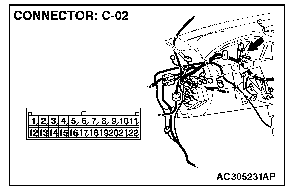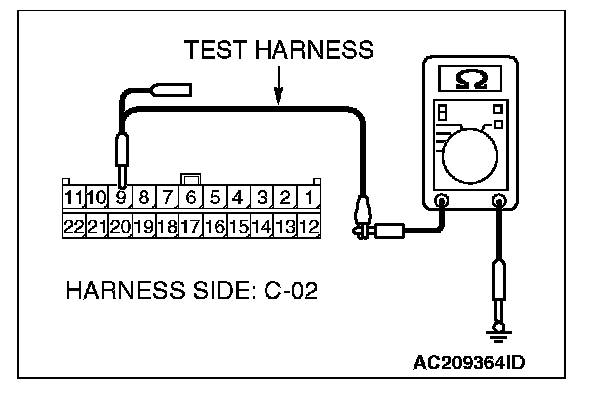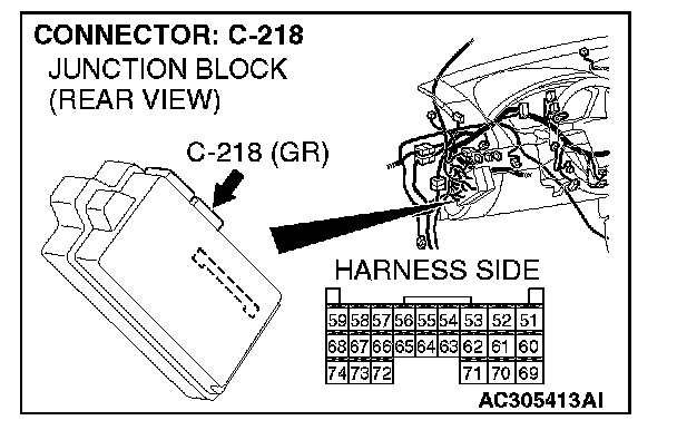 1. Disconnect joint connector (3) C-02 and ETACS-ECU connector C-218, and measure the resistance at the wiring harness side of joint connector (3) C-02.