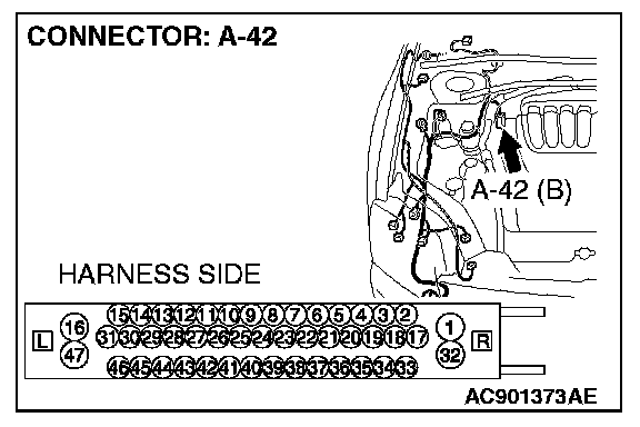 STEP 26. Check TCL/ASC-ECU connector A-42 for loose, corroded or damaged terminals, or terminals pushed back in the connector.