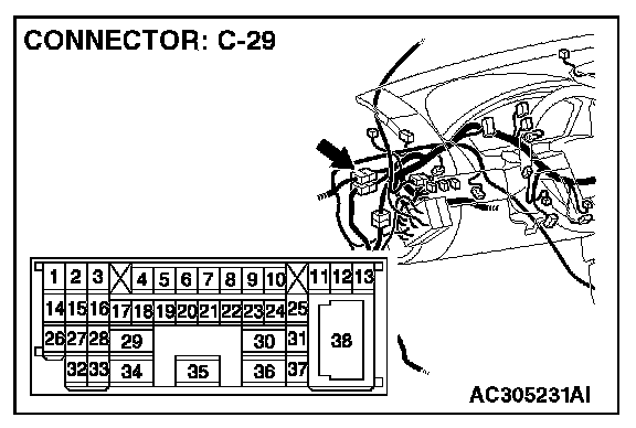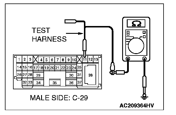 1. Disconnect intermediate connector C-29, and measure the resistance at the male side (at front wiring harness side).