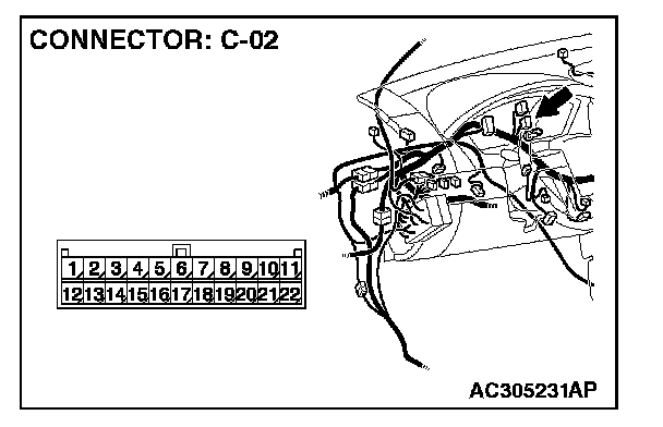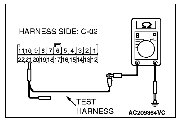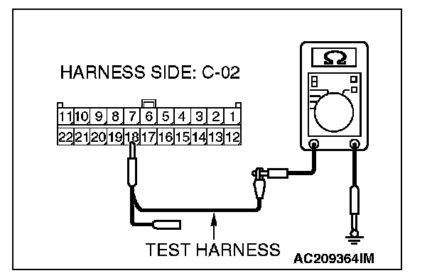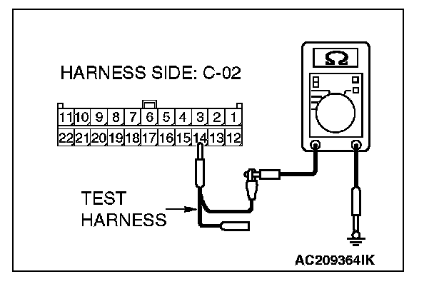1. Disconnect joint connector (3) C-02, and measure the resistance at the wiring harness side of joint connector (3) C-02.