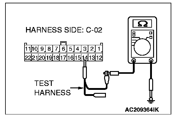 4. Measure the resistance between intermediate connector terminal 14 and body ground.