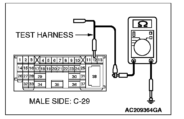 NO : If the resistance measures less than 1 k ohms, repair the wiring harness between intermediate connector C-29 and joint connector (3).