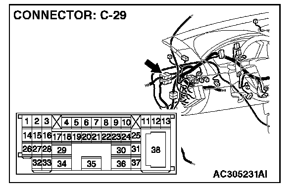 STEP 4. Check intermediate connector C-29 for loose, corroded or damaged terminals, or terminals pushed back in the connector.